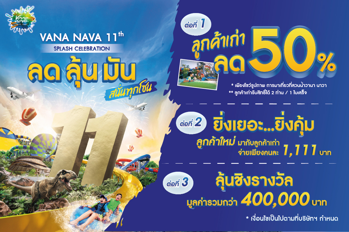 Vana Nava Water Jungle Hua Hin, Thailand’s world-class water park, is celebrating its 11th anniversary with a grand event, reinforcing its position as the premier water park destination in Thailand and one of the top 5 water parks in Asia. This celebration introduces two exciting new zones you can’t miss: Vana Village and Adventure River, along with incredible promotions and a chance to win prizes worth over 400,000 Baht!