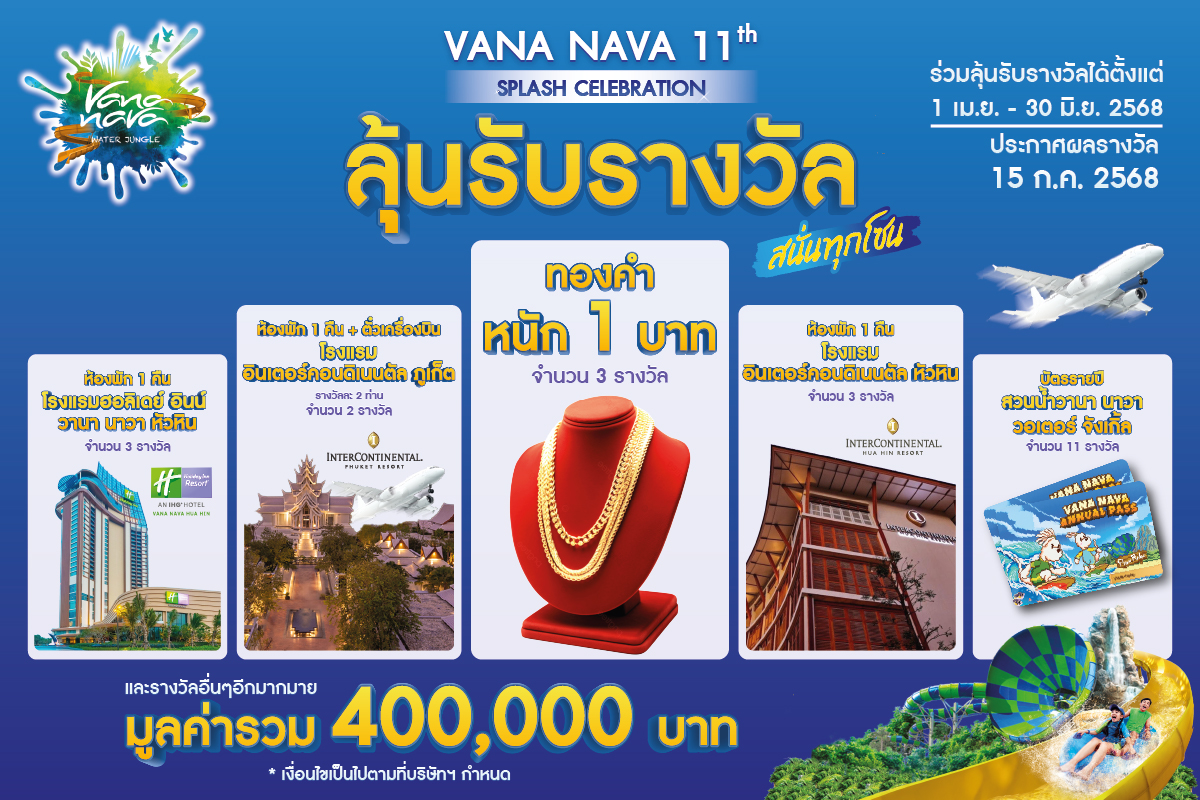 5th Prize: Annual Family Pass (2 adults, 1 child) to Vana Nava Water Jungle Hua Hin (11 winners) – Total value: 203,830 Baht