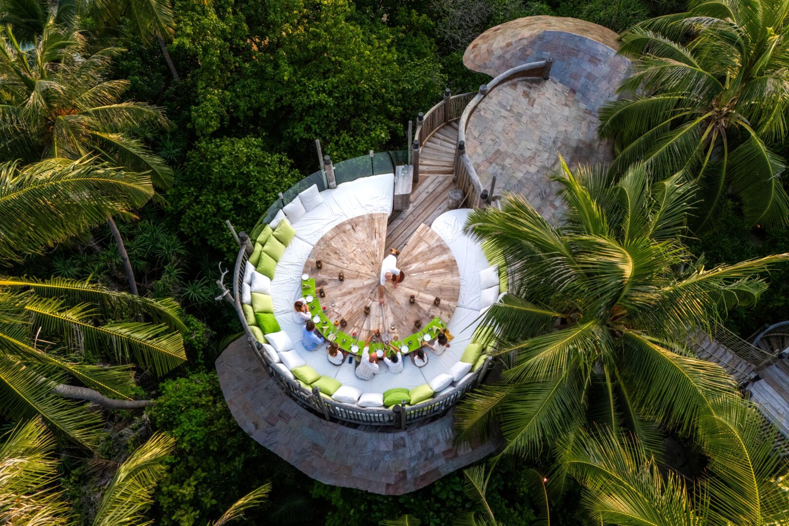 At Soneva Fushi, ‘fly’ to Flying Sauces along a 200-metre zipline that weaves between towering platforms and rope bridges, leading to a dining tower elevated 12 metres above the ground with panoramic ocean views. The thrill of the journey blends seamlessly with breathtaking scenery and seasonal menus that are continually refreshed. Guests can indulge in an immersive dining experience as Flying Sauces regularly hosts world-renowned Michelin-starred chefs such as Tim Raue and Singapore’s very own Julien Royer, transforming cuisine into a journey worth travelling for.